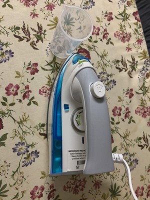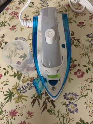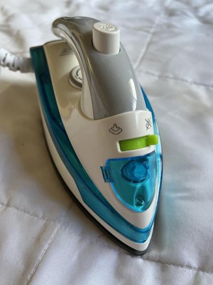 [This review was collected as part of a promotion.] Don't let the size fool you! This steam iron works great! It heats up fast! You can use the steam or iron function (there is a green button) to iron out creases/wrinkles. It comes with a small measuring cup for water fill. The cool thing about this iron that I like besides how fast and easy it is to use is how light weight it is and how little room it takes up. Perfect for travel. The handle adjusts for storage. The dial is right underneath the handle and can feel precarious at first to turn but after using it a couple times you get used to it.
