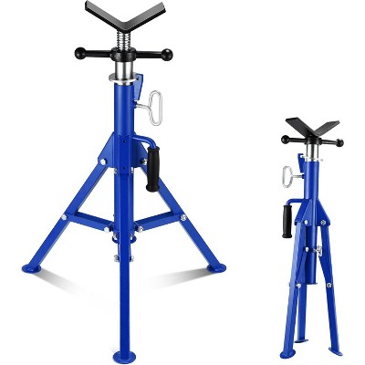 - - Heavy-Duty V-Head Support: This pipe jack stand features a robust V-head with a 2-ball transfer mechanism that securely holds pipe sizes from 1/8" to 12", ensuring stability and reliability for all your welding projects