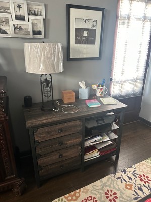 I love this credenza. Its a perfect size for my office. I have my printer on top and the bottom drawer is a file drawer. Everything is neat and in its place.