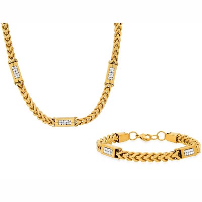 Steeltime 24" and 8.5" Men's stainless steel thick cuban link chain set with simulated diamonds clasp. Color Options: Silver, Gold - 2 of 4Steeltime 24" and 8.5" Men's stainless steel thick cuban link chain set with simulated diamonds clasp. Color Options: Silver, Gold - 3 of 4Steeltime 24" and 8.5" Men's stainless steel thick cuban link chain set with simulated diamonds clasp. Color Options: Silver, Gold - 4 of 4