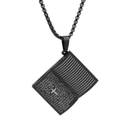 Steeltime Unisex stainless steel 'padre nuestro' prayer pendant with 24" chain. Color Options: Silver, Gold