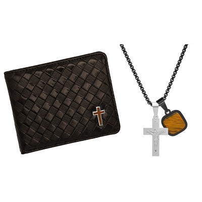 Steeltime Men's Braided Vegan Leather Cross Wallet