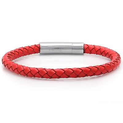 Steeltime Men's genuine leather 8.5" braided bracelet push n pull closure. Color Options: Black, Brown, Red, Blue - 2 of 4Steeltime Men's genuine leather 8.5" braided bracelet push n pull closure. Color Options: Black, Brown, Red, Blue - 3 of 4Steeltime Men's genuine leather 8.5" braided bracelet push n pull closure. Color Options: Black, Brown, Red, Blue - 4 of 4