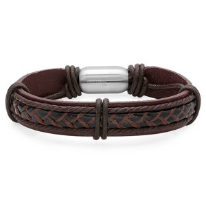 Steeltime Men's leather bracelet with strings design. Color Options: Brown, Black - 1 of 4