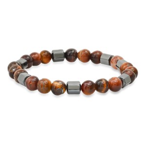 Men's red tiger eye and hematite beaded stretch bracelet. Thoughtfully designed for everyday wear and special moments, with a balanced profile that pairs easily with casual layers or evening looks. Each piece is produced with attention to proportion and comfort, emphasizing clean lines and subtle texture so it feels considered without being fussy. Wear it solo as a quiet statement or stack it with favorites to build a look that reflects your mood. Great as a gift or a personal update to your rotation; store in a soft pouch when not in use to help preserve the finish.