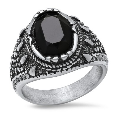 Men's stainless steel and simulated black diamond ring. Thoughtfully designed for everyday wear and special moments, with a balanced profile that pairs easily with casual layers or evening looks. Each piece is produced with attention to proportion and comfort, emphasizing clean lines and subtle texture so it feels considered without being fussy. Wear it solo as a quiet statement or stack it with favorites to build a look that reflects your mood. Great as a gift or a personal update to your rotation; store in a soft pouch when not in use to help preserve the finish.