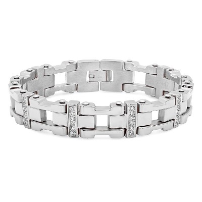 Steeltime Men's stainless steel link bracelet with cz. Color Option: Silver, Gold