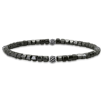 Steeltime men's sterling silver cross and hematite beaded stretch bracelet