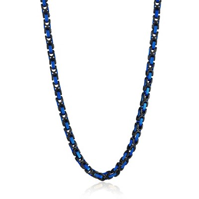Men's two tone black and blue ip stainless steel byzantine necklace. Thoughtfully designed for everyday wear and special moments, with a balanced profile that pairs easily with casual layers or evening looks. Each piece is produced with attention to proportion and comfort, emphasizing clean lines and subtle texture so it feels considered without being fussy. Wear it solo as a quiet statement or stack it with favorites to build a look that reflects your mood. Great as a gift or a personal update to your rotation; store in a soft pouch when not in use to help preserve the finish.