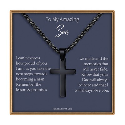 Men's two tone black ip and stainless steel with simulated diamond cross pendant. Thoughtfully designed for everyday wear and special moments, with a balanced profile that pairs easily with casual layers or evening looks. Each piece is produced with attention to proportion and comfort, emphasizing clean lines and subtle texture so it feels considered without being fussy. Wear it solo as a quiet statement or stack it with favorites to build a look that reflects your mood. Great as a gift or a personal update to your rotation; store in a soft pouch when not in use to help preserve the finish.