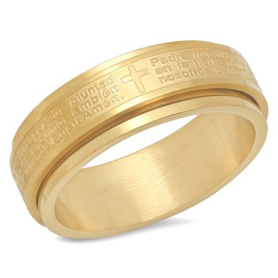Steeltime Men's two tone stainless steel and 18k gold plated Our Father prayer ringg