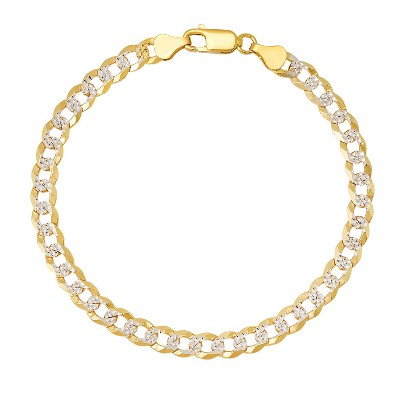 Steeltime Men's two tone stainless steel and 18k gold plated simulated diamonds curb miami cuban link chain bracelet