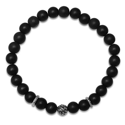 Men's sterling silver and black lava beaded stretch bracelet. Thoughtfully designed for everyday wear and special moments, with a balanced profile that pairs easily with casual layers or evening looks. Each piece is produced with attention to proportion and comfort, emphasizing clean lines and subtle texture so it feels considered without being fussy. Wear it solo as a quiet statement or stack it with favorites to build a look that reflects your mood. Great as a gift or a personal update to your rotation; store in a soft pouch when not in use to help preserve the finish.