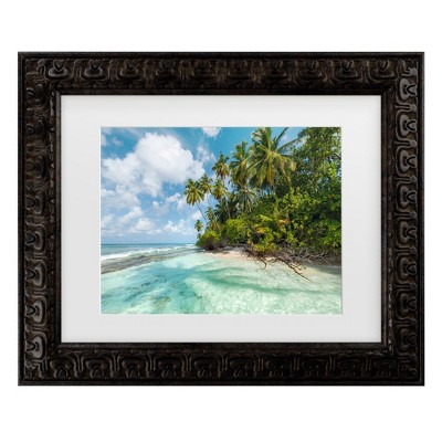 This ready to hang, matted framed Wall Décor Living Room by Trademark Fine Art features a beach with palm trees and a fresh water. that'll look great in any bedroom, kitchen, bathroom, or apartment. Whether it's contemporary, rustic, modern, or traditional style wall art décor, Trademark Fine Art offers a variety of high-quality, carefully built pieces that will surely complement any style with art themes that range from fascinating abstracts to breathtaking landscapes. Each bathroom wall art piece is printed on durable cotton poly blended canvas using Giclee, a process for creating high-quality fine art reproductions that are nearly indistinguishable from the original piece.