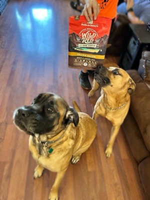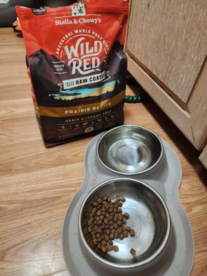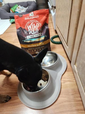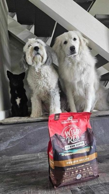 [This review was collected as part of a promotion.] I received complimentary Wild Red Raw Coated Grain & Legume Prairie Recipe dog food in exchange for my honest review. First off , my dogs will eat their own vomit after it sits in the sun for 3 days so I’m not sure if my saying “ my dogs seem to like it “ really means much. Both my pups are seniors, one is very elderly and suffers from a lot of skin issues ( fatty tumors ) and other autoimmune disorders. The ingredients of this food seem pretty similar to the expensive “clean” dog food we regularly purchase so no complaints there. Every time I gave this food to my dogs they straight up inhaled it ( so it must taste good ), which brings me to why I’m giving it 4 stars instead of 5: the pieces are really small compared to most dog food. They’re the size of puppy chow and both my dogs kept choking on the little pieces from not chewing them up.