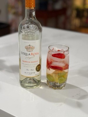 Stella Rosa Tropical Mango Semi-Sweet White Wine is crafted in the small village of Santo Stefano Belbo, born from the beautiful hillside vineyards of the Piedmont region of Northern Italy. The Riboli Family has created this special blend of several aromatic grape varietals including Moscato Canelli. The grapes are harvested, pressed, centrifuged, and then held cold as juice at 28 degrees Fahrenheit. The juice is fermented at various intervals throughout the year allowing the wine to remain fresh and delicate. The Riboli family uses this technique to capture the natural flavors of ripe mango and exotic passion fruit. During the fermentation process, the alcohol is created in tandem with the wine’s natural carbonation. Once the desired sweetness is achieved, the wine is centrifuged and bottled. Its natural acidity and low pH strike the perfect balance with the wine’s inherent sweetness. It is not cloying or heavy. Serve chilled by-the-glass, pour over ice, or mix with your favorite spirit for an all natural, fruit-forward cocktail.