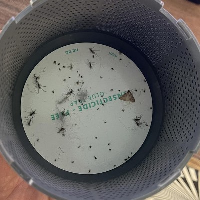 We used this trap one night in our kitchen and caught many gnats and a mosquito. Fast forward 8 days and the sticky board is full of bugs! Trap includes extra sticky boards. No chemicals, can't hear it running, small, lightweight unit.