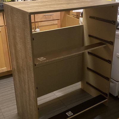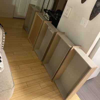 This dresser arrived with broken pieces. The corner had a crack and the inner cabinet had a piece of wood missing. Not to mention it’s not even in the middle drawer there’s a larger space between it than the rest of the drawers. It’s also not very deep so not a lot of clothes fit inside.