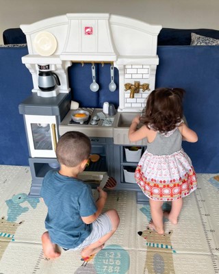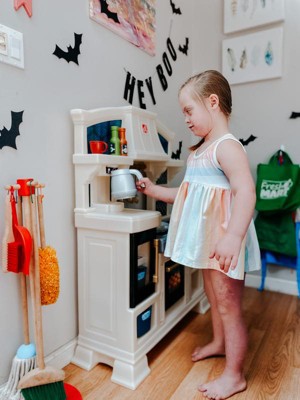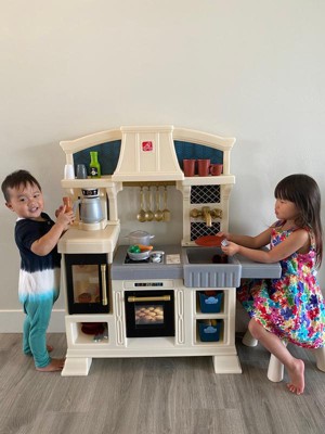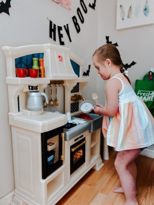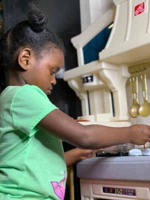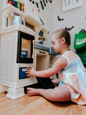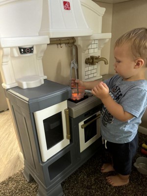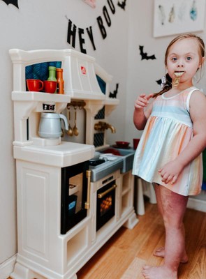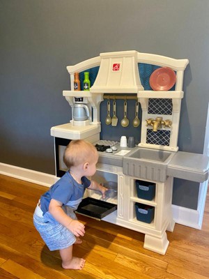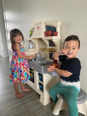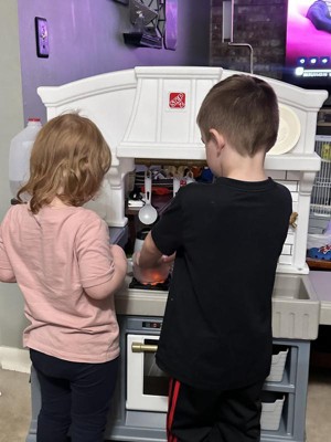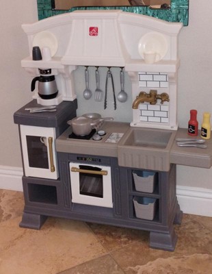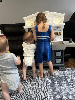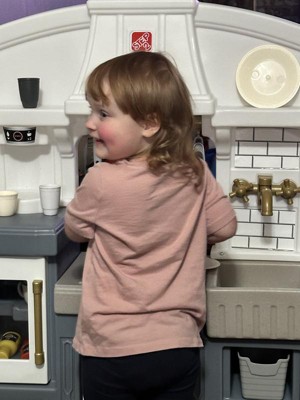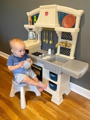 [This review was collected as part of a promotion.] Our daughter was super excited to receive this adorable, stylish kitchen! It was super easy to assemble and very sturdy, which was a plus for us parents. Our daughter loves pretend play and this kitchen allows lots of that with the included accessories of some utensils, dishes, seasonings and even pans with plenty of storage space to add in some of her own favorites. The right side even has a little countertop space for them to sit and enjoy their meal, the seat is also included. She especially loved the sound activated/interactive stove top, bringing her pretend chef moments to life! Thank you Step2 for letting us test this item as a part of the Step2 Toy tester program!