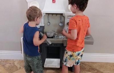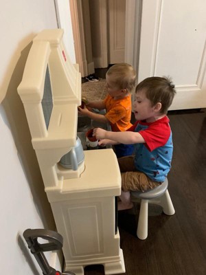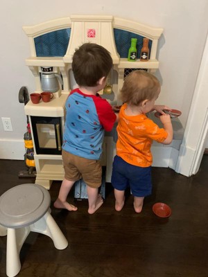 [This review was collected as part of a promotion.] This has been such a fun toy! Having boys, I really was not sure how they would like it, but they absolutely love this Classic Chic Kitchen!! It was fairly easy to put together. My husband and I had it together in 10-15 minutes. The stove feature is a favorite. I wish there were more features that made noise or lit up, but that is just us. If there is an option to get a second stool, we would be interested because we have two children very close in age. Overall I think the boys are extremely satisfied with the toy! Thank you Step2 for letting me test this item as part of the Step2 Toy Tester Program!