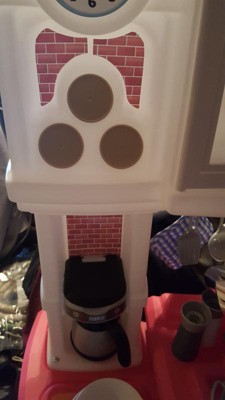 My 2-year-old granddaughter loves this play kitchen. She loves making coffee and eggs to feed her Dad.