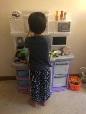 [This review was collected as part of a promotion.] Nothing is more exciting for young toddlers than cooking like mom and dad. This Step 2 Great Gourmet Kitchen is easy to assemble and made of very sturdy plastic. Very easy to wipe down and clean. My little one loves the realustic sounds the knobs and burner make. She "brews" me fresh coffee and makes pancakes and bacon. I purchased a separate selection of pretend play foods to accompany the kitchen. This will entertain and provide hours of imaginative play. No child should ho without a play kitchen.