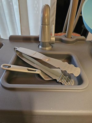 - Little hands can spin the turntable, open the oven, twist the clicker knobs, and play with the sink.