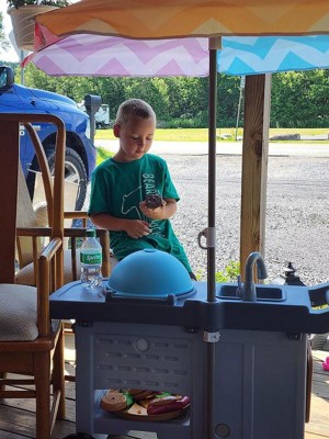 This product is a hit for my 19 month old and my 5 year old! We weren’t even able to put it outside after building before they started playing and having a blast. The food is awesome and easy for my little one to put together. The only thing I wish there was an option for is the sizzling grill to turn off because of course my little one is opening and closing the bbq a million times. All in all great product and I know there will be lots of fun to be had with it!
