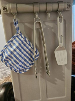 Ignite your little chef’s imagination and serve up endless adventures with the Grill & Go BBQ Cart with Lights & Sounds, a toy grill that makes pretend cooking more exciting than ever! Watch their faces light up with delight as they lift the grill lid to activate glowing charcoal and sizzling sounds, bringing every make-believe meal to life with realistic fun. Designed for interactive play, this kids’ grill playset helps develop fine motor skills with twistable clicker knobs, a working oven door, and a spinning turntable, encouraging hands-on creativity. Whether they’re flipping burgers under the removable umbrella for outdoor play or hosting a cozy indoor cookout, this play grill is built for year-round adventures. Sturdy wheels and smart storage make it easy to roll from one exciting pretend picnic to the next, ensuring every play session is effortless and fun. Spark creativity, inspire confidence, and grill up sweet memories with every make-believe meal! Made in the USA with US and imported parts.