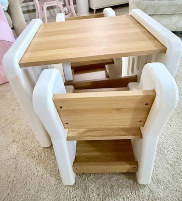 Absolutely love this set. The chairs and table are such high quality and a perfect size for my 1 & 2. 5 year old. Pretty easy to assemble and I LOVE the look of the items in our playroom! I also love how there is room for some small storage under the chairs.