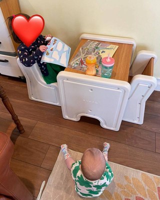 My toddler loves this child-sized table and chair set. She uses it to color, do crafts, and work on puzzles. It’s the perfect size for her, and there’s still plenty of room for her to grow into it as she gets older. The chairs fit nicely under the table and include storage underneath the seats. I have a 9-month-old who is starting to pull herself up on everything. This set is super sturdy. I have no fears about her pulling the table or the chairs down. Though not impossible, it would take some major effort to knock over any of this furniture. A huge benefit of the Step2 products is the ease of cleaning. It’s easy to wipe down without harming the product. We will have this set for years to come.