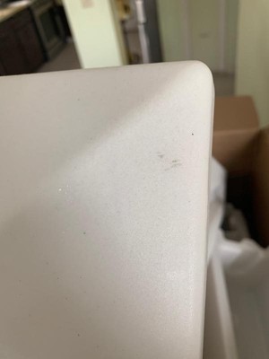 At first I thought the item was use.. but it is just very poorly made and packaged.. product came with a lot of defects and dirty as if the product was laying around a warehouse for years with the box open. The product came in the box without protection and I found parts loose on the bottom of the box. The yellow spots and black marks do not come off I did try cleaning it. I can’t believe a company would let something leave their warehouse like this.Please see pictures