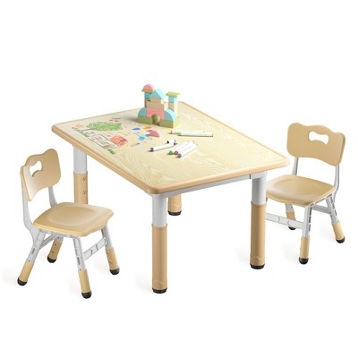 This table and chair set is designed with toddlers in mind, offering a perfect size for little ones to play, eat, and engage in creative activities. Guests appreciate its lightweight design, making it easy to move around, and its sturdy construction that withstands daily use. The set is easy to clean and requires no assembly, making it a convenient choice for busy families. However, some guests noted concerns about the table's surface and chair stability.