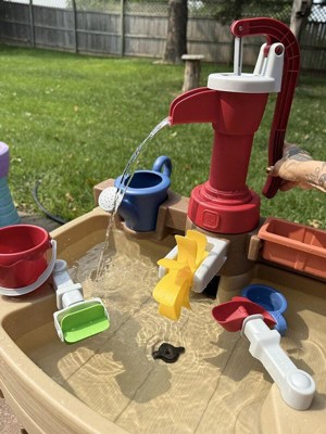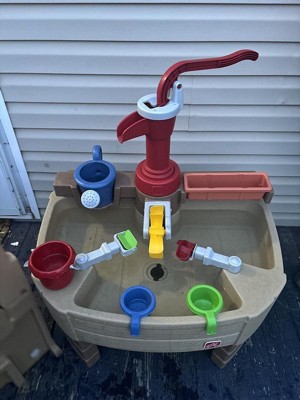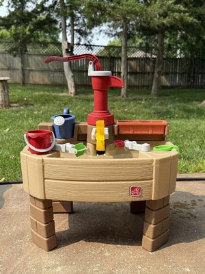 It was time to upgrade our water table and this was the perfect fit for our household. The new water pump feature adds a new element of play that our old one didn’t have. The pump also swivels ! When I was putting it together I thought I was doing something wrong cause it wasn’t locked into place, but the purpose is so that it has the capability of filling up the watering can and waterfall to either side. Overall we love it and it is a great addition to our back yard , If my kids were giving this rating they’d say 5 stars.