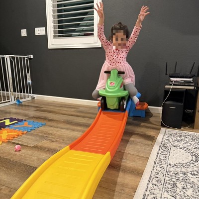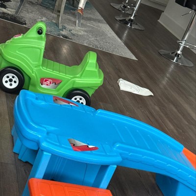 - KID-POWERED FUN: Toddlers can climb the wide, kid-friendly steps and board the ride-on car on their own; They can safely work on practicing gross motor skills, balance, and hand-eye coordination as they push the coaster car back up and ride again.