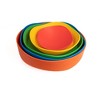 This five piece stepping stone set, is a versatile product that can be used both indoors and outdoors. It is used to challenge balance, encourage motor planning, and enhance creative play. It is constructed from heavy duty plastic and features rubberized bottoms that will grip the floor. The stones vary in size and stack into each other for easy clean up. This product can be used for a variety of ages. Toddlers can crawl over the obstacles and learn how to navigate their way safely. Preschoolers can used this to climb on and over, as well as step from stone to stone in a path. At any age, it can promote motor skill acquisition, spatial orientation, and balance.