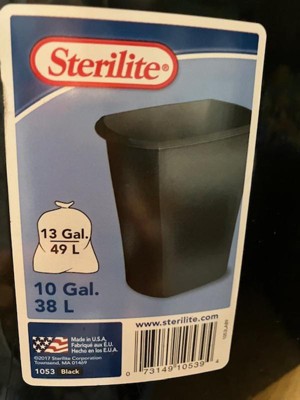 The wastebasket has a label on it saying 10 Gal. and a picture of a garbage bag stating 13 Gal. but no 13 Gal. bags fit this basket. I would not purchase another wastebasket that there is no bags that fit over the top of it.