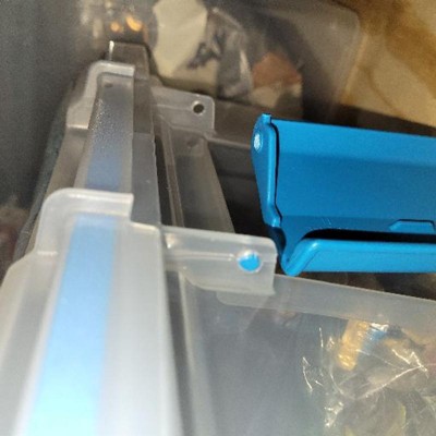 storage tubs and totes| Depth | Width | Height | Capacity: Volume | Color | Material | Primary Item Stored |