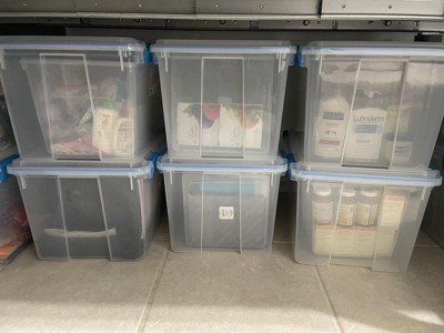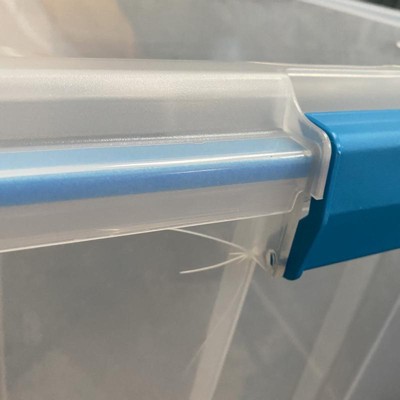 Enjoy the peace of mind organization can bring to your home with the 120-quart clear plastic wheeled storage containers with gasket latched lids from Sterilite.