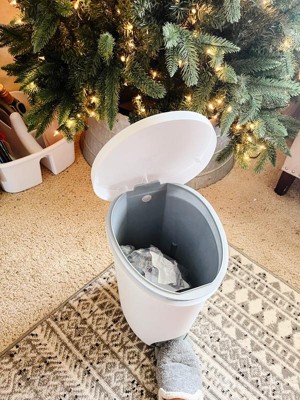 Easy to use, simply press on the foot pedal to open the lid, letting you dispose of waste without having to touch the wastebasket itself. Featuring a spacious 2.6-gallon interior, the bin includes a bag-holding feature that securely holds shopping bags or trash liners, ensuring the bag doesn't fall in or crumple as you throw away your trash. With a slim, oval design, the trash can fits comfortably in small spaces such as your bedroom, home office, or bathroom, keeping garbage out of view for easy disposal. Easy to clean, the wastebasket's textured surface makes for a quick, simple cleaning to keep your home hygienic.