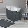 With a 20-gallon capacity, the organizer container keeps your favorite spaces, rooms, or offices organized by providing maximum versatility. The simple squared-off design offers a space-efficient shape that is the perfect size for sports gear, off-season clothing, and games, while the opaque base allows contents to be out of sight for maximum protection. A durable construction makes these an ideal solution for garage, basement, or attic storage needs. Equipped with indexed lids, multiple totes can be stacked neatly on top of each other for efficient use of vertical storage space.