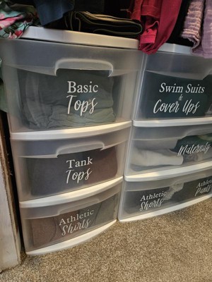 [This review was collected as part of a promotion.] I have this one in my closet, each drawer is the perfect size for a category of clothing. Its super easy to file fold and place in the drawer and I can easily see and find what I need. It also fits the depth of our closet well and I like that you can choose to put the wheels on or keep them off. Considering buying additional for my husbands clothes and for toy storage.