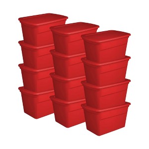 Sterilite 30 Gallon Durable Stacking Seasonal Storage Tote, Red