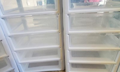 Create a simple system of organization in your home with the Sterilite 5-Drawer Desk Storage Bin, 4 Pack & 3-Drawer Desk Storage Bin, 4 Pack.