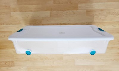 [This review was collected as part of a promotion.] I got a few of these for my oldest kid to have additional storage under their bed in their college dorm, but I also used one of them to send with my youngest to a week-long summer camp so they could store all of their clothes neatly under their bed and not worry about critters getting into their stuff. These containers are a great size and shape for fitting under the bed, and the little wheels really help get them out from under the bed without too much hassle. My only (very mild) complaint is that I wish the lids locked down a little better on the long sides - it's not as snug as I'd prefer it to be, but it still ultimately gets the job done!
