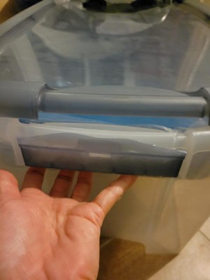 No, I'm not talking about me, I'm talking about the containers. These have been a longtime go-to (we probably have 15-20 of them), but I'm realizing what I thought was 1 damaged container is now multiples. Some of these have been stacked for years under medium loads, and as I've moved a few of them the latches have pulled away and pieces of the actual container have shattered. Brittle is how I'd describe it.
