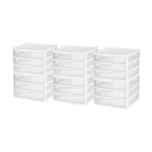 This small storage unit is ideal for offices, bedrooms, bathrooms, and dorms. Maximize your storage space with the Sterilite Clear Plastic Stackable Small 3-Drawer Storage System, (12-Pack).