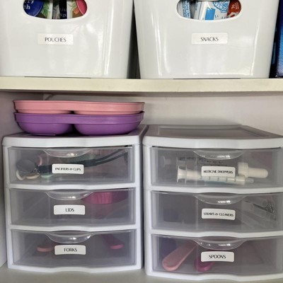 Create a simple system of organization in your home with the 18-Pack of Sterilite ClearView Plastic Small 3 Drawer Desktop Storage Units in White.