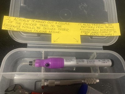 I cannot say enough about this little gem! Not only is it the perfect size for my micro engraver (and temporarily my hand drill and bits) it helps alleviate some of the stress that my ADHD tends to lay on all the little things all at once! My bigger issue is being unable to get my hands on a few more of them! My rechargeable engraver pen needs a new space (matching) in a less spacious box than it’s current one. lol I also have one smaller, about 1/2 size I need to replace but can’t locate them now either!! The hinge has gotten broken and even though the latch holds great, my tools keep tumbling out when I least expect it. I have lots of tiny little tools that could use their own cases…. The Dremel and flex work all my zillions of bits…?! Oh the humanity! lol Seriously though keeping tools together and protected extends their life incredibly. These are fantastic thank you for such all awesome line