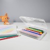School Boxes offer a great on-the-go storage option for arts and crafts, school, office, accessories, and workshop supplies. The Sterilite Small Pencil Box is conveniently-sized to help students and teachers organize and transport pencils, crayons and a variety of other school and office supplies. The compact design fits easily in a backpack, desk or locker, while the snap close lid ensures items stay neatly contained. The flat surface of the lid makes it easy to personalize the pencil box with stickers, name tags or other designs. The size and shape allow this pencil box to be a versatile storage solution. Store away or transport travel size items, beauty products, first aid items, hair accessories, jewelry, sewing and craft supplies, and more!